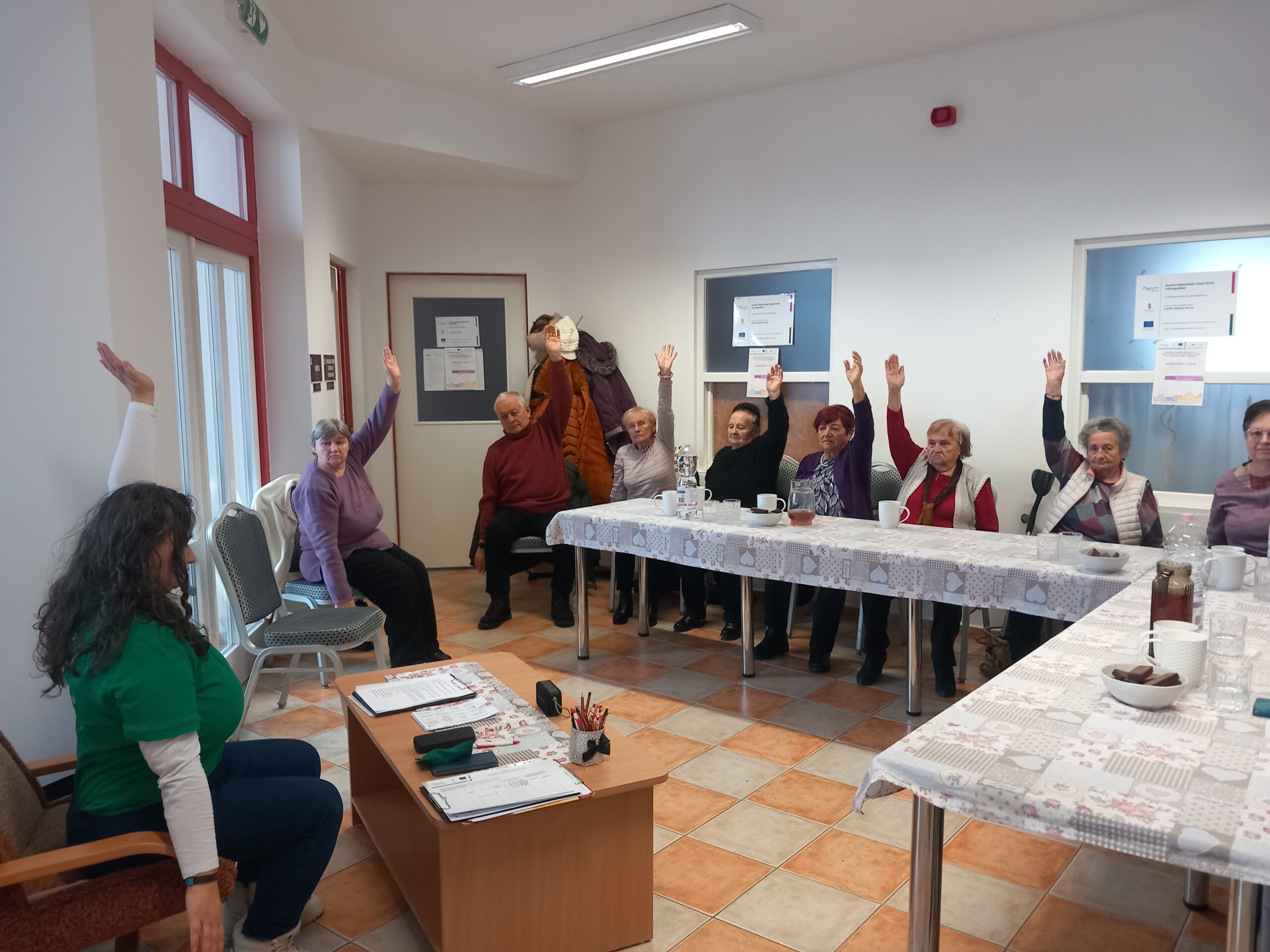 A foglakozás során a jelenlévő szépkorúak egyebek mellett tornán, agytornán, zenei BINGÓ játékon, és ritmikus játékos foglakozásokon vettek részt.