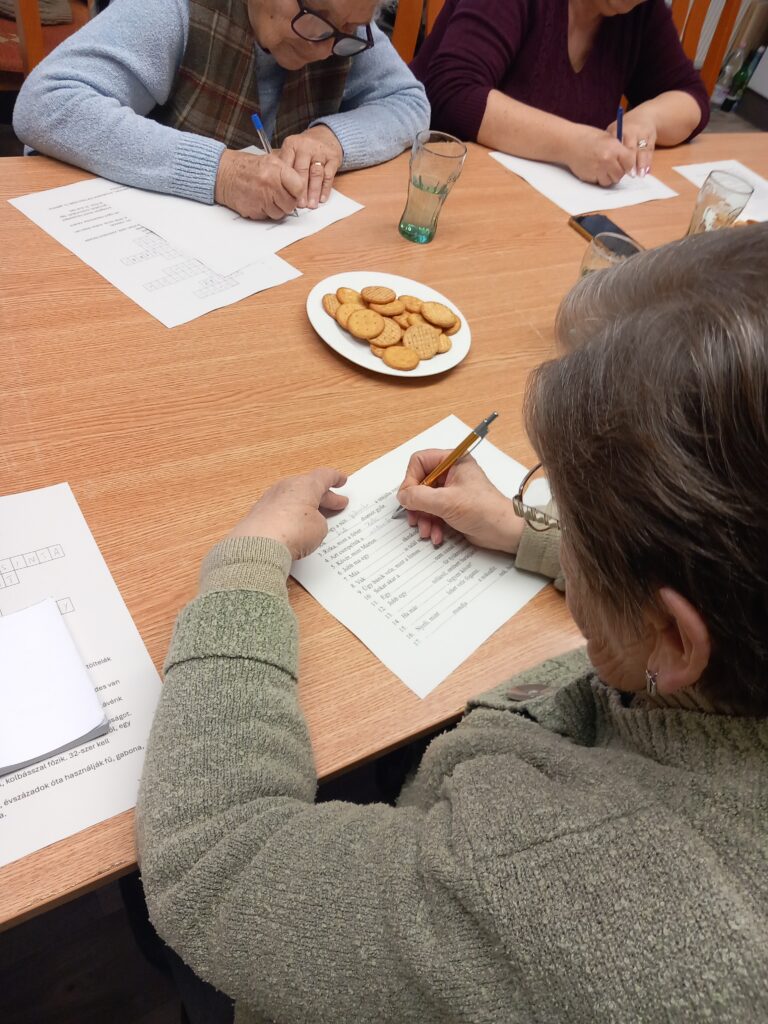 2026. február 23-án, Mikepércsen keresztrejtvényfejtő és memóriafejlesztő foglalkozásban volt részük a szépkorúaknak.