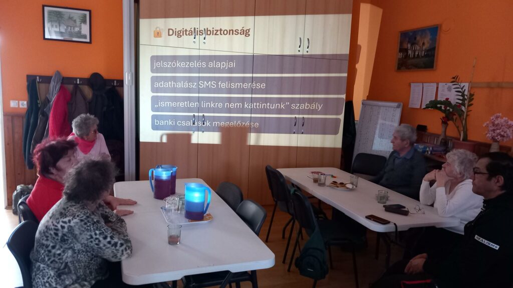 2026. március 18-án okostelefon használat, digitális tájékoztató és játékos fejlesztő foglalkozásban volt részük a kabai időseknek.