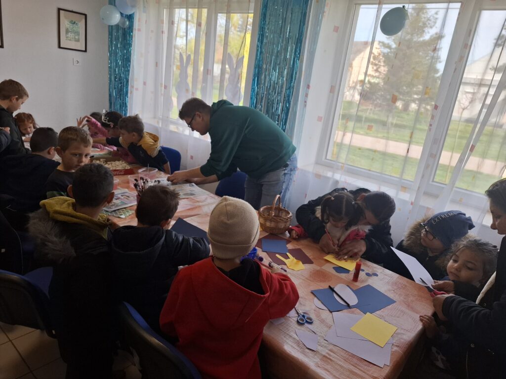 Az április 2-án megtartott „Mozdulj ki, ne kockulj!” program keretében a gyerekek izgalmas tojáskeresésen és tojásegyensúlyozó versenyen tehették próbára ügyességüket, a kézműves kuckóban pedig az ünnephez kapcsolódó díszeket készíthettek. Az esemény remek alkalmat biztosított a közös játékra és az ünnepi készülődésre.